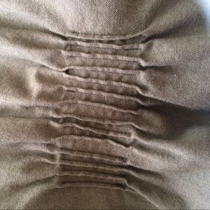Pre-loved but in EUC! I think this is back from 2007-2009. It's a vest-style dress. Front pockets. Button-down. Wool/Rayon blend. Vest part of the dress is lined in 100% acetate. Back has a gathered effect. Dry clean only. Color is army green or mossy green. My daughter used only twice: once as a dress with a cute shirt under it, and the second time as an opened garment with jeans and combat boots. So cool! Size is 4. 11" across shoulders, 19" across chest, 34.5" long.