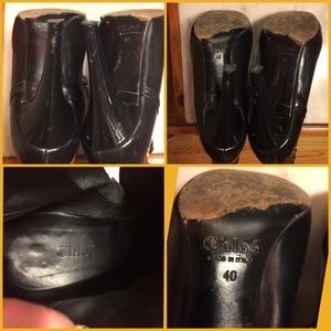 CLASSIC BLACK ITALIAN LEATHER ANKLE BOOTS BY CHLOÉ. 4" STILETTO HEEL. BOOTS ARE 8" HIGH. ZIPPER CLOSE ON BOOT INTERIOR. WORKING & DECORATIVE STRAP AT TOP WITH SILVER BUCKLE TO ADJUST FIT. RETAIL $950. BOOTS ARE SZ 40/US SZ 10. GOOD PRE-OWNED CONDITION. I POLISHED UPON RECEIPT. THE WEAR TO NOTE ( PICTURED) IS SOME SCRATCHES ON BACK HEELS. PLEASE DO NOT HESITATE TO ASK ANY QUESTIONS! #chloé #blackitalianleather #ankleboots