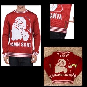 When the weather outside is frightful, grab this sweater that’s just as delightful. An intarsia-knit crewneck sweater trimmed with holiday spirit will make you the talk of the table this season.TALKING SWEATER TECHNOLOGY•Press the button to hear “DAMN SANTA” Comes with 6 different recordings from the Damn Daniel Team that say “Damn Santa” when you press the leather play button.