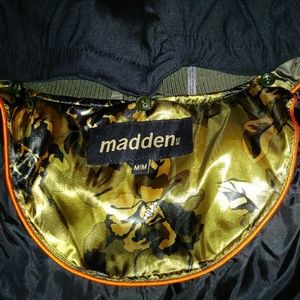 Green size med.stud stars all over front.Zipper on each side ,hand pockets.A zipper pocket on uppet left arm.Tried to pic all pockets together.So many cool things about this jacket hard to get in only 8 pics.80$ Tag!!!