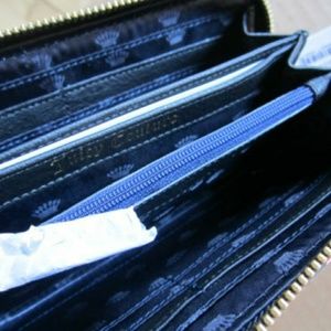 MARVELOUS Malibu Striped Quilted Nylon Wallet by Juicy Couture❕ Features a zip around closure with gold💥JC/crown logo zipper pull, gold💥JUICY COUTURE/crown logo plaque on front, quilted exterior, embossed crown👑logo in navy & contrast black lining on the inside. With 4 full length large bill compartments, 2 slip full length bill compartments, 1 zippered pocket with leather pull & 12 credit card slots. I've just described the PERFECT wallet...TADA❗💖 *Comes in the original retail packaging