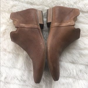 Paul Green Genuine Leather Chelsea Boots. UK 7.5 (US 10) *please see size chart in photos. Perforated leather with inside zippers. Light signs of wear on soles. These were a light cream color, but I used Kiwi saddle soap to clean them and changed them to more of a rich Camel color. The saddle soap is included with the boots. Super high quality, and a MUST for any wardrobe. You can rock these year round. They're the kind of boot you'll keep forever if you care for them.