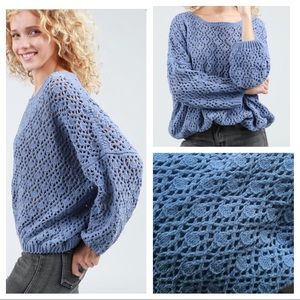 ✨Amazing dusty blue open knit pullover. I am in love with everything soft and cozy this season. Effortless chic!!! Wear it as is or with your favorite tank, cami, or bralette underneath. Also available in Off White.