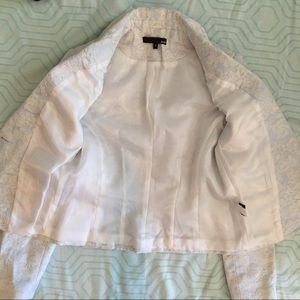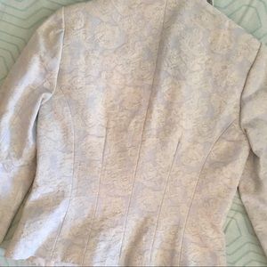 Dalia Pale baby blue & white floral embroidered blazer with pockets & crystal button. Darting in the front & back gives this jacket a nice & Tailored look. Style with jeans & tee size 2 Measurements are approx & taken laying flat and relaxed: 35" bust, 12" from armpit to hem, 30" waist buttoned, 23" shoulder to cuff, 15" shoulder width, 21" length from middle of shoulder to hem. No tags. This jacket is in excellent condition.