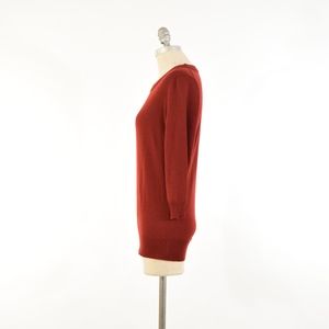 Brick red version of J.Crew's best-selling Tippi sweater (factory version). 100% merino wool, fairly lightweight and soft. Crew neckline and 3/4 length sleeves. Size S. Semi fitted through the body. Unlined.