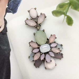 Darling & elegant, the "Ainsley" gem drop earrings are ideal for weddings, prom, or a classy holiday soirée! With their dangling floral crystal embellishments, you're sure to turn heads in these gorgeous oversized jewel statement earrings. These dainty beauties feature blush, rose pink, pastel green, light blue, purple/gray, & white rhinestones set in antique gold colored metal alloy. They are stud earrings with push backs. New with protective packaging.