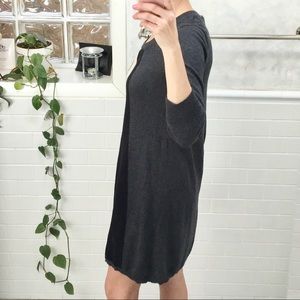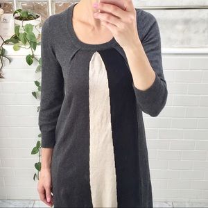 Warm, classy, sophisticated and yet comfy sweater dress from Cameilla. Two pleats on both sides of the chest line 3 different color fabric stripes down the front. This XS Dress is 92% cotton & 8% cashmere. My beautiful friend Kara (in poshpics) carried Cameilla in her boutique along with Charlotte Tarantola and we are obsessed with both lines! We were literally heartbroken when she retired! Charlotte always added little details to turn any item into an extremely dainty & feminine piece ❤️