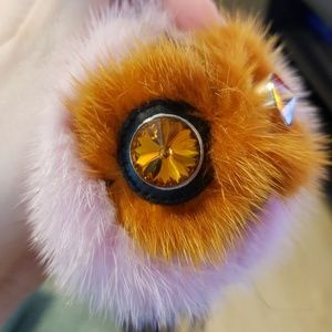 This is an authentic Fendi Marshmallow Mink Fur Bag Bug Charm. This is cute and furry Fendi bird to add to your handbag. It has a pink, orange, and black mink fur bodice with orange crystal eyes, a black calfskin leather strap, and a palladium spring clasp with an engraved Fendi name tag. Dress up any handbag with this fun and playful bag charm by Fendi. This item is in a perfect condition and comes with fendi box.