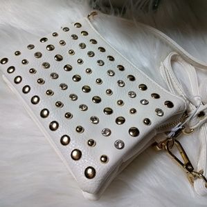 Brand New! Stunning Ivory and gold crossbody purse with rhinestones! W 6 1/2" H 5" * Price Firm*