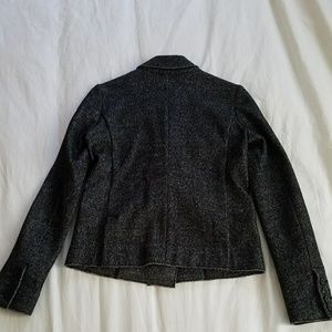 This fabulous marled double breasted blazer is in amazing condition! Wool blend, with very cool raw edges give it an interesting twist. Please refer to pics for approx measurements and fabric content.
