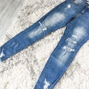 Gorgeous medium wash, distressed denim jeans. Very soft with lots of Stretch! Inseam: 26-27". 98% cotton!2% spandex.