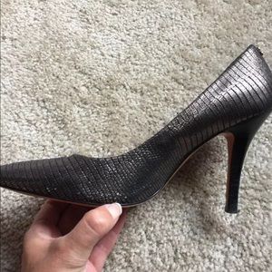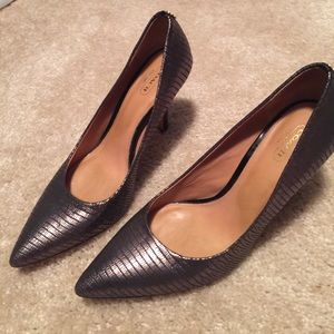 Authentic Coach Pumps. These are in excellent condition. Only flaw is on the right heel. See picture. Worn a few times. Size 10 Coach pumps. Color is very beautiful. Metallic bronze with black.