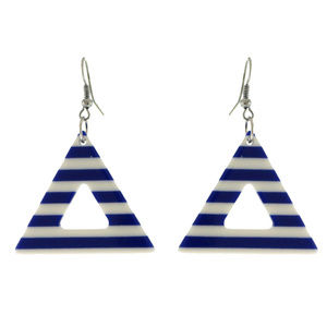 Silver-Tone Drop Dangle Earrings With Blue And White Stripe Design TME1269D