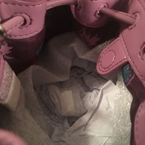NEW. COACH ROUND LAVENDER PETAL WRISTLET. VERY SOFT LEATHER AND ABSOLUTELY CUTE:-) I LOVE THE ROUND DESIGN WITH THE COLORFUL PETALS. YOU WILL LOVE THAT YOU GOT THIS BAG. JUST THE PERFECT SIZE:-) MAGNETIC AND DRAWSTRING CLOSURE. BEAUTIFUL COLOR.