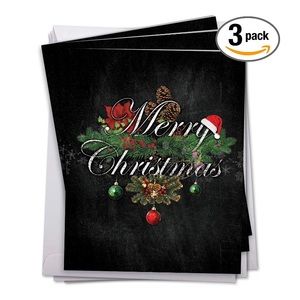 Merry Christmas Greeting Cards: Chalk and Roses; with Envelopes (Extra Large Size: 8.5" x 11") IT COMES WITH Envelopes