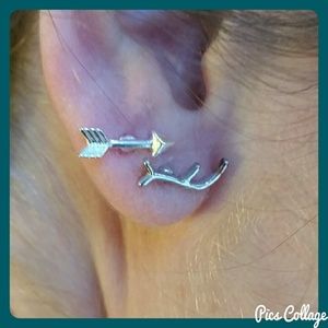 Dainty silver antler/branch earrings. Zinc metal alloy. Pairs nicely with silver arrow earrings, also shown (available in separate listing).