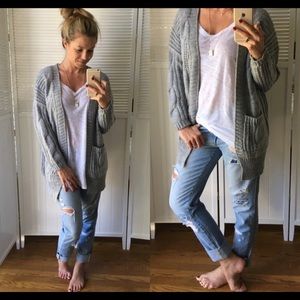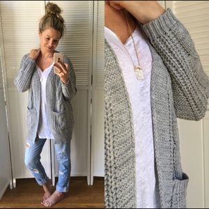 •RE-POSH• Chunky Grey Knit Cardigan! Simple, Casual Chic, and Perfect for Fall and Winter Months. Very Cozy and Soft. Loose Knit Open Cardi with 2 Pockets. Bought from {mrsperkins}