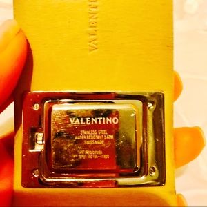 Silver closure. Looks like cuff watch. Used handful of times. White Genuine crocodile leather, very wide band. Band has been altered. Has some light black marks on band. Sure can remove with leather cleaner, just haven't tried.