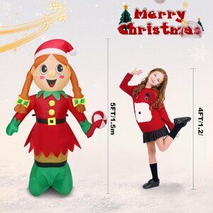 * 【Cute Christmas Design】: The Christmas Inflatable Elf Girl about 5 FT, which is a suitable size for Christmas outdoor and indoor decorations.