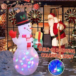 * CUTE CHRISTMAS DESIGN - Christmas inflatable snowman holds gifts about 5 feet tall. They will make the Christmas atmosphere more intense and welcome all neighbors.
