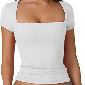 (4 +1 pcs)/$25 different colours Womens short sleeve tops with square neck add a touch of elegance.Slim fit easily accentuates your graceful figure.