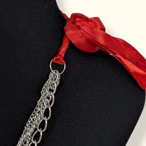 5-Strand Chain & Red Ribbon Necklace