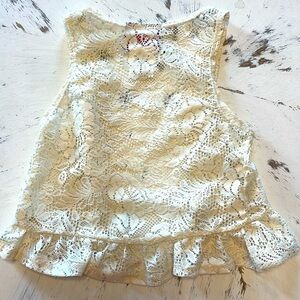 Cream, lace vest with ruffle hem by RMLA. Perfect for a neutral aesthetic or boho look.