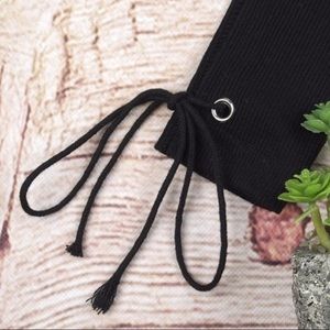 A fitted crop basic with lace up sleeves.