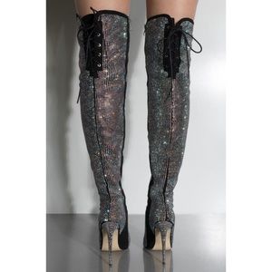 🔥New Restocked🔥 : Be Dazzling Rhinestone Thigh High Boots. Heel height: 4.75. Get these Gorgeous Boots for the Holidays!! These Boots are 🔥🔥🔥🔥. Will sell out Fast!! *****These Boots Fit Small Legs Only.. (Ex. Photo Pic.)Thigh circumference 16-19 inches around, Calf must be 13-13 1/2 inches around and Ankles size : 8-8 1/2 around. Using measuring Tape. Get yours Today! All sizes will be available.