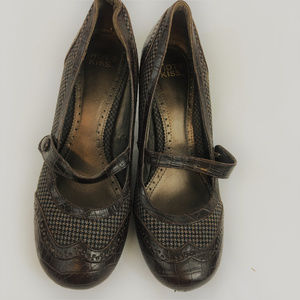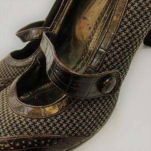 Hot Kiss Brown Tweed Mary Janes Heels, Size 8