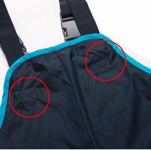 Girls or boys wind and waterproof overalls cotton padded trousers in size 2T. These pants are worn by kids all over Europe as they play outside in the rain! Scotchlite treated for waterproofing. Snaps at waist and ankles, elastic cuff at ankle and strap that goes under the foot. Adjustable shoulder straps. Terrific find!! If you live in rain country (Oregon, Washington?) you NEED these pants!! Top quality! Perfect for wet muddy outdoor play!