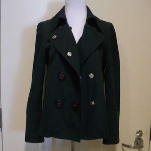 MARC JACOBS Puff-Sleeve Oversize Statement Button Black Cotton Canvas Pea Coat M