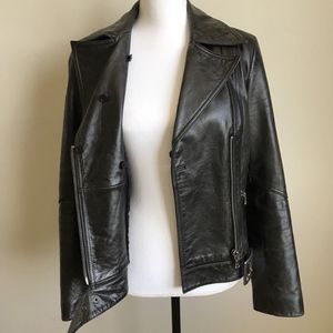 @nooshinz they are almost identical. The only this is the jacket for sale in the following photos doesn't have the leather strap on the shoulders. Which I feel is better. But same zipper arms, belted bottom and front closure zipper.