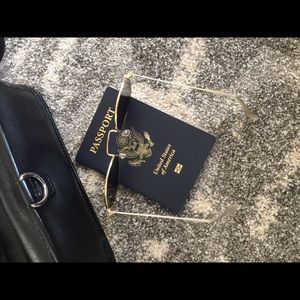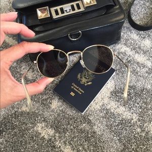 Mirrored rounded on trend fashion sunglasses. These feature a smaller slightly rounded frame style. Nose pads so you can adjust for ultimate fit and comfort. The mirrored front of sunglasses is more of a purple metallic tint and the frame is gold metal color. Brand new. Comes with case.