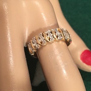 This pretty band is crafted in solid.925 Sterling Silver with 18k yellow gold overlay and contains.25ctw of genuine white Diamonds 💎💍 Trade Value 175$