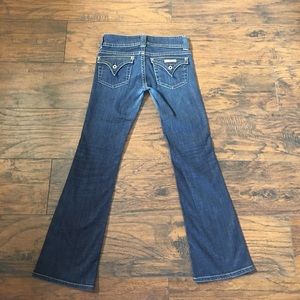 Hudson- Signature Boot cut jeans- low rise- these are a 27” inseam- the inside tag is missing- some wear pictured in inner thigh- overall good used jeans