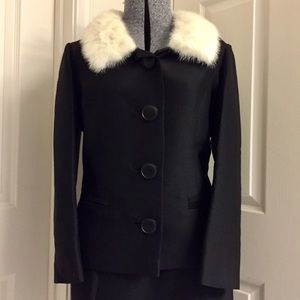 Authentic VINTAGE dress suit in PRISTINE condition! Gorgeous FUR collar (likely MINK) is super soft & bright white! Both jacket & skirt are fully lined. Jacket length is 20.5 is inches, has a 4 button front, 2 small pockets, & 2 hook/eye closure on the fur collar. Bust measures approx 36/38. Skirt has side zip & button closure. Waist measures at 24 in (NO stretch), total length 22 in. Suit very likely custom made due to smaller skirt size compared to the jacket. π€ REASONABLE offers welcome.