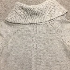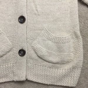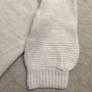 Gorgeously chunky knit sweater from Olive! Nice and thick,?asymmetrical button-up with a collar that could be buttoned al the way up into a cozy cowl. The knit is subtly infused with silver thread. No size tag, but measurements correspond to a medium. Great condition used sweater—very minor pilling. As the tag is in another language, I can’t tell the composition of the knit, but I am fairly certain that it is a wool blend. 29” from shoulder to hem; 21” armpit to armpit; 3/4 sleeves measure 14”.