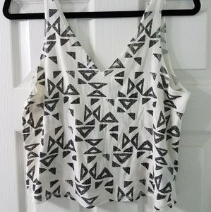 Lightweight crop top. Dark grey design on cream colored shirt. Small slits on sides.