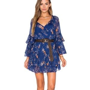 A gathered neckline and tiers of breezy ruffles accentuate the soft and feminine shape of a romantic minidress with an enchanting botanical print.
