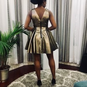 NWT. Polyester mix. Fully lined. Open at sides. I pair with a strappy bralette. Color is bronze (goldish). I am wearing the M at 135lbs, 5’4 tall. PRICE FIRM.
