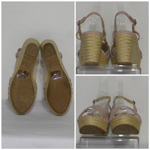 ELLE, Jute Braided Wedge, Strappy Slingback, size 8.5, silvertone buckle, man-made materials. Rulers for reference only (blue is 6", green is 12"). Pictures are accurate depiction of condition, please zoon in for close up view of any distress, scratches, scuffs. SAVE BIG! AUTOMATIC 30% BUNDLE DISCOUNT! ADD TO A BUNDLE!