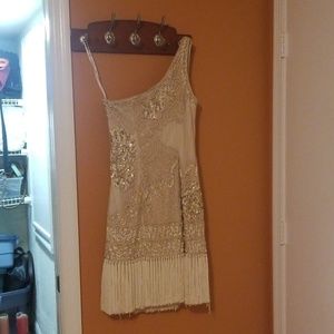 Gorgeous cream colored cocktail dress with lace beading pearls and fringe. Only worn once.