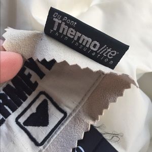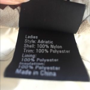 Good condition. The belt is missing as is one inside toggle but you can cinch the waist inside. Warm and stylish with inside and outside pockets. Off white with black faux fur trim on the hood.