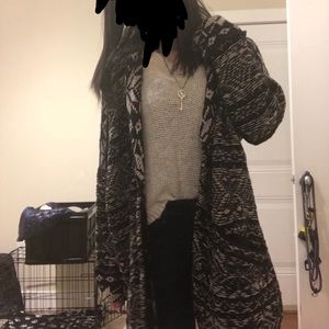 For snow-white winters and crisp, chilly nights, Free People's charming intarsia cardi has you covered. Model measurements: 5'10" height, 30. 5" bust, 23" waist, 33. 5" hips. Hooded neckline with draped lapels, long sleeves, concealed snap closure, front slit pockets. Wool/nylon/linen. Hand wash. Imported. Color: gray