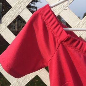 This is a brand new without tags. Never worn. Hot pink, forever 21 brand, size small dress. Off shoulder. So cute! Skater style skirt. Poly spandex blend. Stretchy and form fitting.