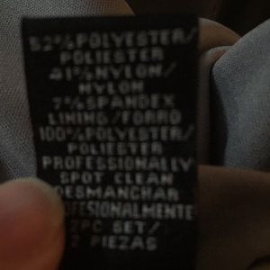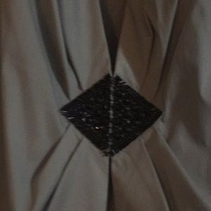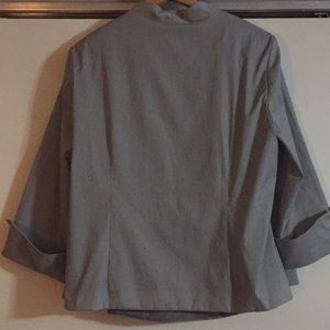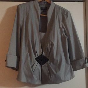 Dressbarn Collection size 20W gray jacket and tank set. Jacket is 3/4 sleeves with buttoned cuffs. Hook and eye front closure. Black beaded design on front closure. A few beads are loose but this should be an easy fix. See photos. Tank is matching gray of same material. Scoop neck and fitted cut.