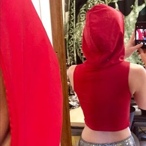 Red hooded crop top with lace up front and attached hood! Great for music festivals, events or a rave ! Made w/ silky spandex swim suit like material. I bought this off Etsy to do a rave cosplay to be Melisandre from Game of Thrones but never wore it. Sizing in comments Tags: medieval renaissance middlelands outfit ren faire sca late plur burning man killstar little black diamond ocean moon unif dollskill iheartraves red riding hood raver Edc edm Christmas countdown sexy lbd coquetry clothing