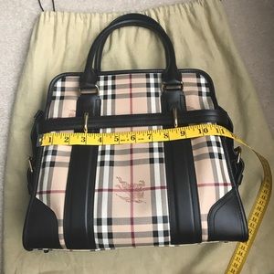 Authentic and in Excellent used condition! No stains or damages and very clean. Trim :100% calf leather. Removable, adjustable shoulder leather strap. Metal feet protect bottom. Made in Italy. Original Dust bag included. Purchased online @US.Burberry.