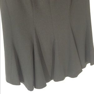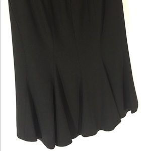 Excellent condition. Black skirt that has back pleats and is slightly longer in the back. Two front slant pockets. Back zipper with 2 outside and one inside buttons. Fully lined. The pictures make this look like the lining is off, but it isn’t. It’s because of the longer back. It doesn’t photograph well. Dry Clean Only. Size 0. 59% triacetate, 41% rayon. Waist about 26”, hips about 36”, about 24.5” long in front, about an inch longer in back. M69